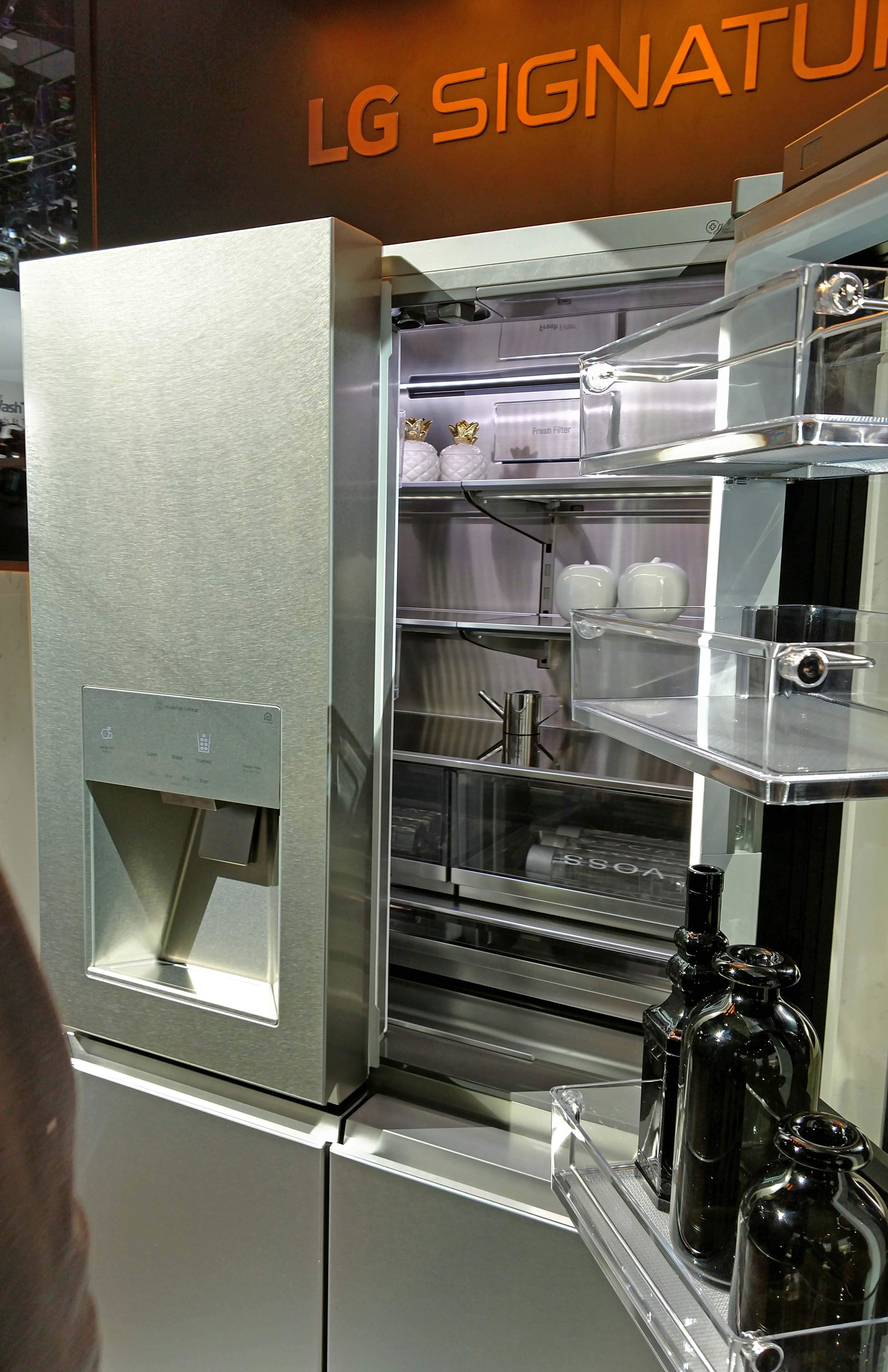 1. Smart appliances remain in the spotlight with manufacturers focusing ontouchscreen refrigerators, door-in-a-door compartments and, of course, the capability to use a touchscreen to know what’s inside the fridge without even opening it. We saw manufacturers connecting with Amazon’s Alexa voice controls and apps like this one in the Bosch booth that provide smart inventory options with back and front interior cameras connecting to consumer.