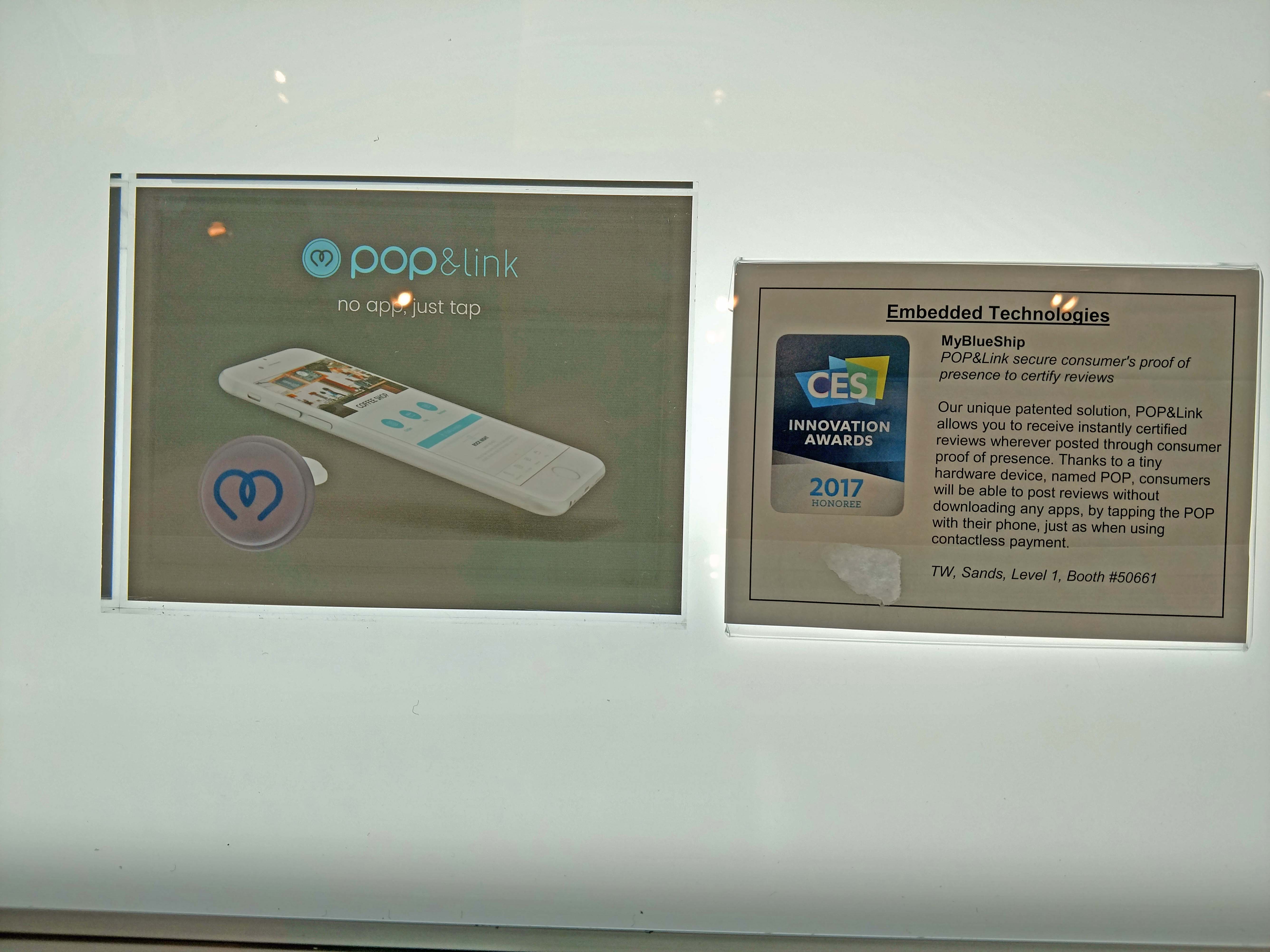 2. We’re not exactly sure how this consumer proof of presence process works, but Pop&link won a CES Innovations Award for being the first Internet of Things (IoT) device that can connect customers to social media reviews while they are in your store or restaurant. Without an app, the device enables a push-and-pull communication channel. Pop&link is a patented tool that lets your customers tap the Link device with their smartphone to access “on-demand” information whenever and wherever they want.