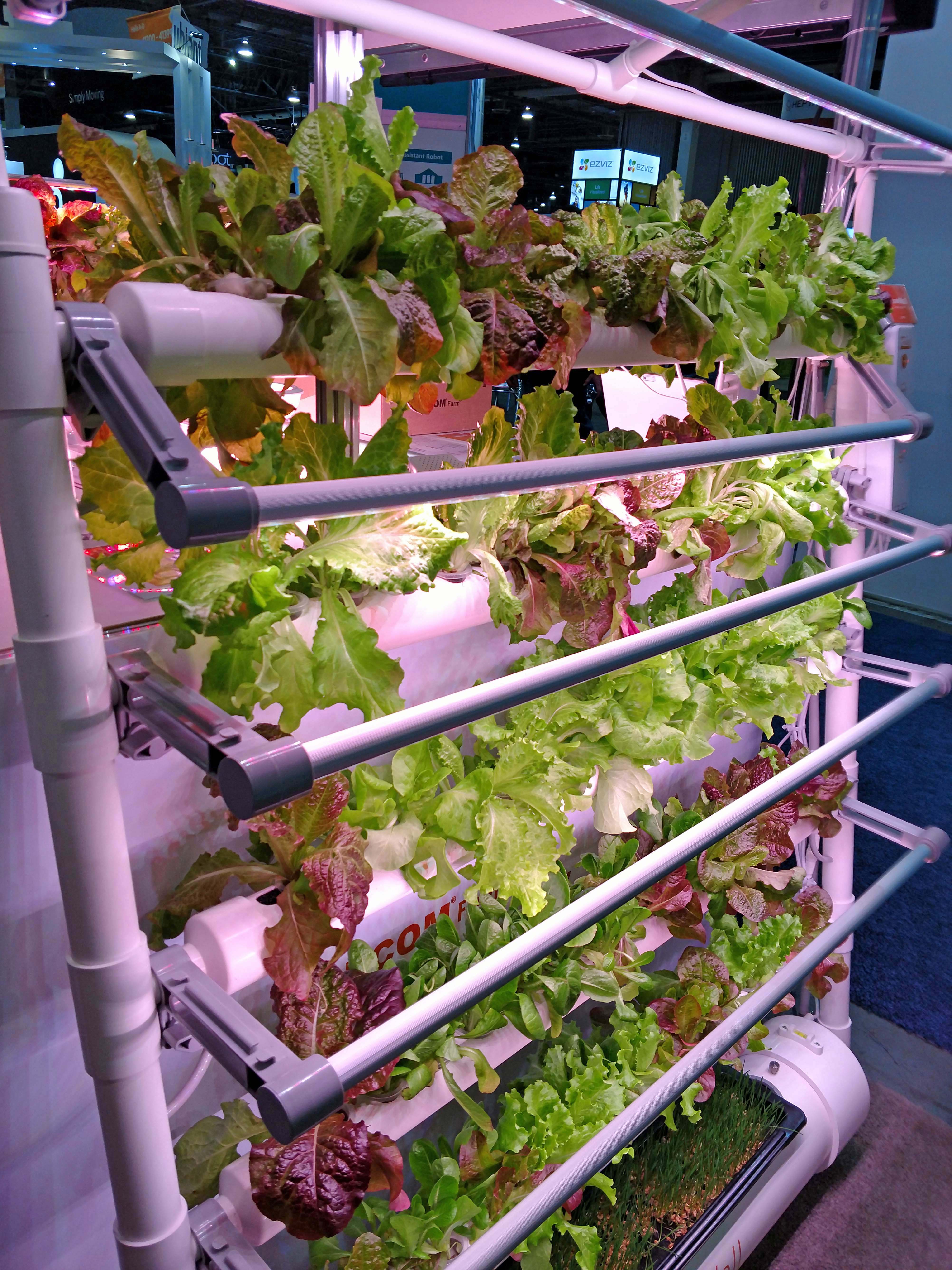 system that can be personal in size or can use cargo-sized grow boxes and walls that connect to water and lights to support indoor gardening systems allowing anybody to grow their favorite vegetables, herbs, sprouts and fruits inside their own home or store.