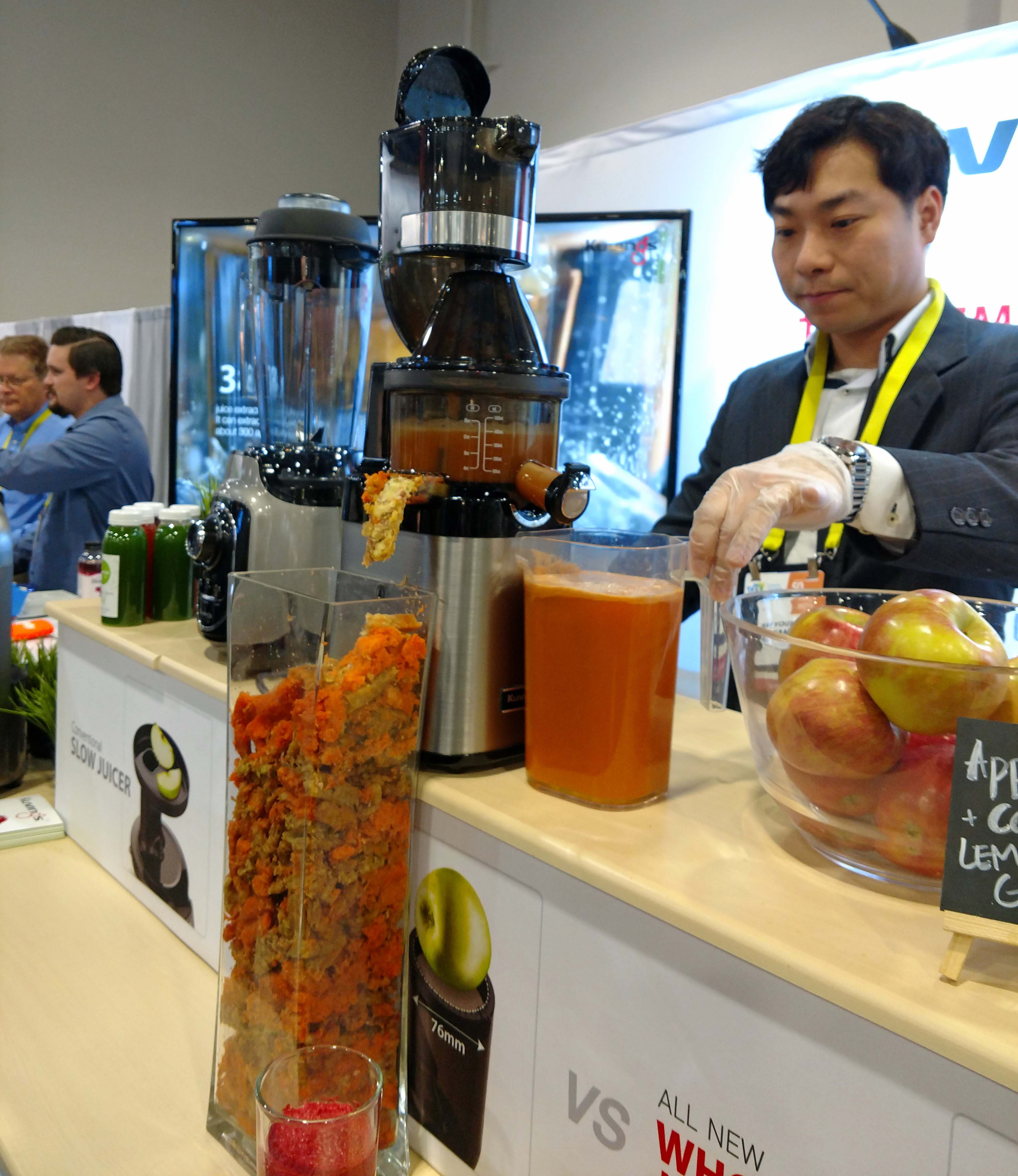 this machine cranking down whole pieces of fruit without precutting with its 3-inch wide feed chute. The Kuvings Whole Elite Juicer employs a heavy-duty motor to extract the maximum amount of juice from fruits, vegetables and herbs.